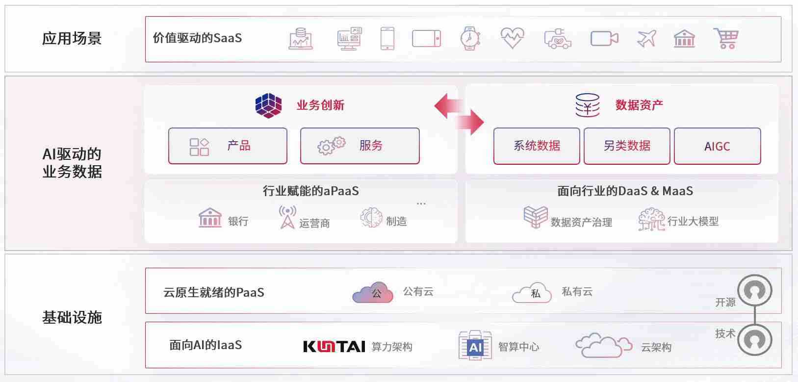 数字时代,,围绕企业数字化转型的关键要素,,GOPAY钱包数码开创性的提出数云融合战略和技术体系框架,,,着力在云原生、、、、数字原生、、、AI原生和信创产业上架构产品和服务能力,,,,为处在不同数字化转型阶段的快消零售、、汽车、、、金融、、医疗、、政企、、、教育、、运营商等行业客户提供泛在的敏捷IT能力和融合的数据驱动能力,,,,构建跨界融合创新的数字业务场景和新业务模式,,助力企业级客户建立面向未来的核心能力和竞争优势,,,,全面推动社会的数字化、、智能化转型升级。。。。